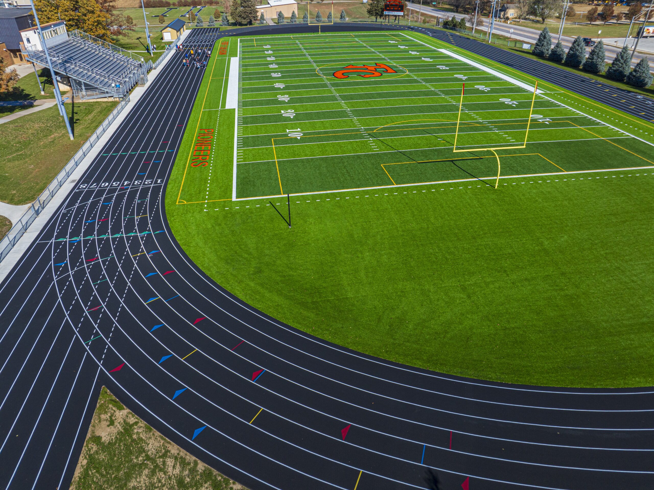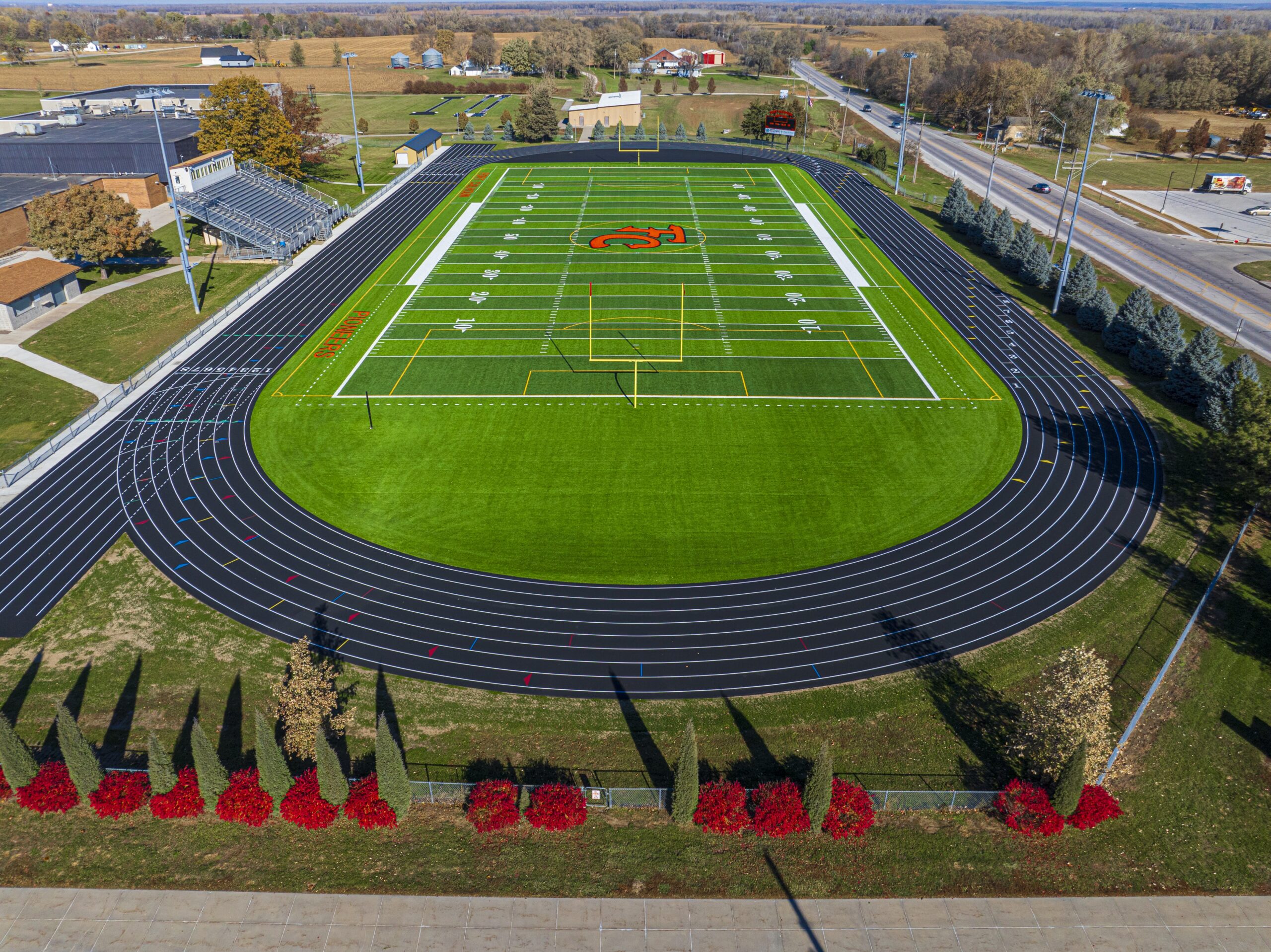 To meet the aggressive schedule, Nemaha took a proactive, hands-on approach that emphasized speed, coordination, and adaptability. Strategic planning, flexible construction sequencing, and daily communication across all stakeholders kept the project moving under pressure. When concrete scheduling became a bottleneck, Nemaha accelerated one of the project’s most time-consuming tasks—installation of the concrete curb surrounding the running track—by deploying newly acquired equipment that allowed the work to be completed in just four days instead of two weeks. The superintendent and several crew members stayed on-site in a camper to maintain momentum and make real-time decisions. That level of commitment helped ensure the upgraded athletic complex was ready by opening night.