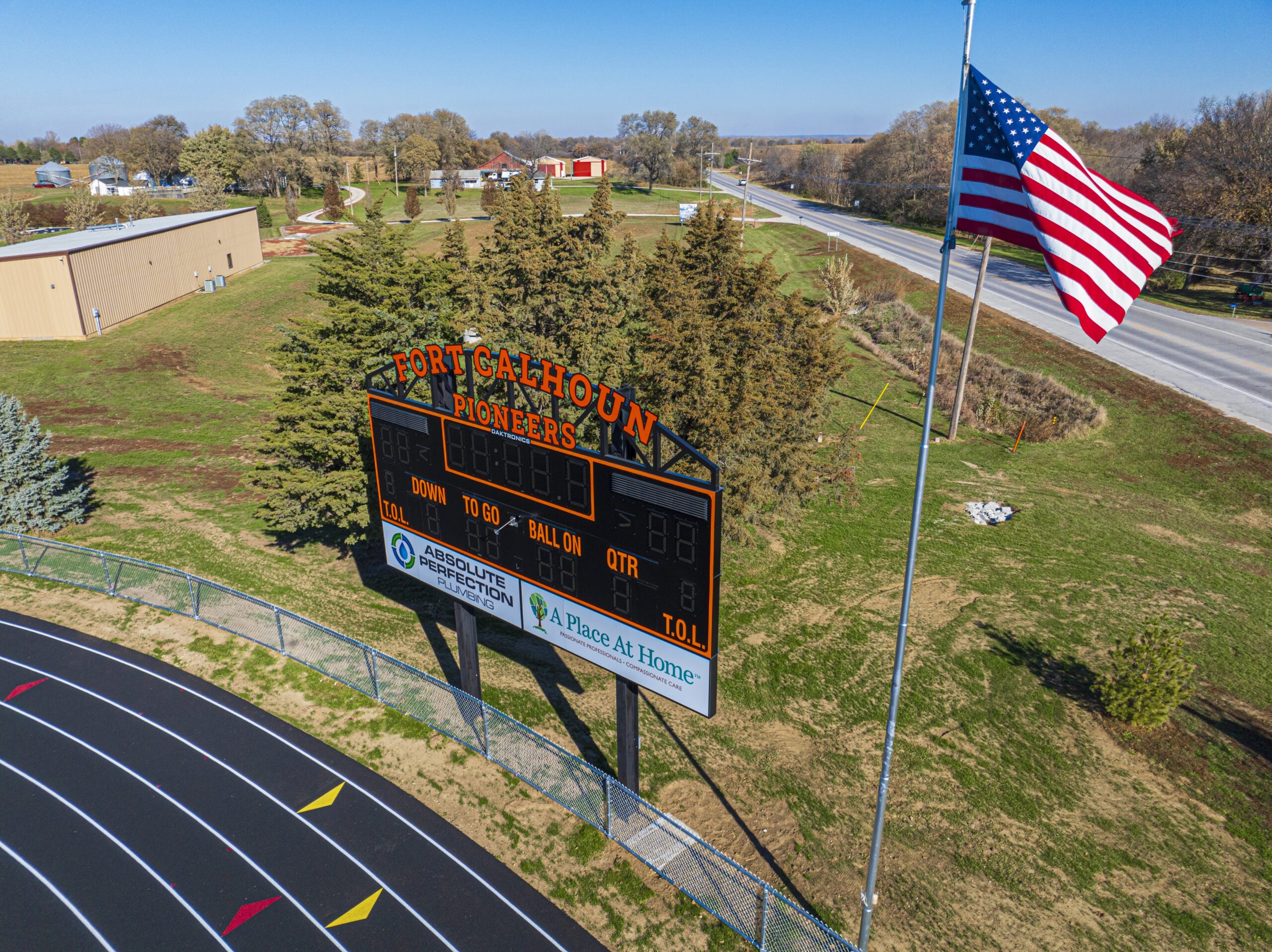 Fort Calhoun Community Schools launched a major upgrade of their athletic complex, converting their natural grass football field to high-performance synthetic turf and adding a new asphalt running track. The project came with a firm, non-negotiable deadline: the facility had to be fully operational for the first football game of the season. One of the major challenges the team faced was limited access to ready-mix concrete. An ongoing supply shortage in the Omaha metro area made it difficult to secure consistent deliveries, which in turn complicated scheduling and caused installation delays during critical phases of construction.